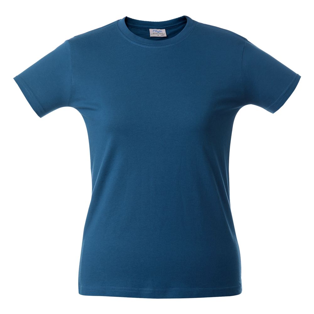 Женская футболка с уплотненными швами на плечах и двойным швом с эластаном. Четырехслойная резинка на воротнике предохраняет его от растяжения.