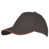 Модель бейсболки с 5-ю клиньями без лобового шва из плотного чесаного хлопка.
