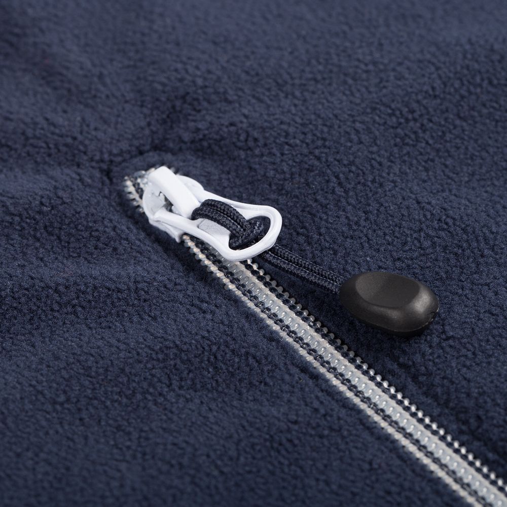 Толстовка из микрофлиса. Передние карманы на молнии, манжеты и низ куртки на тонкой резинке, застежка-молния контрастного цвета.
