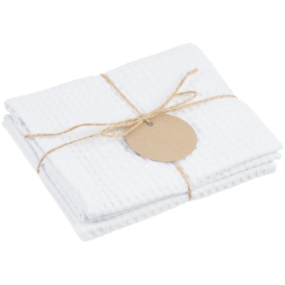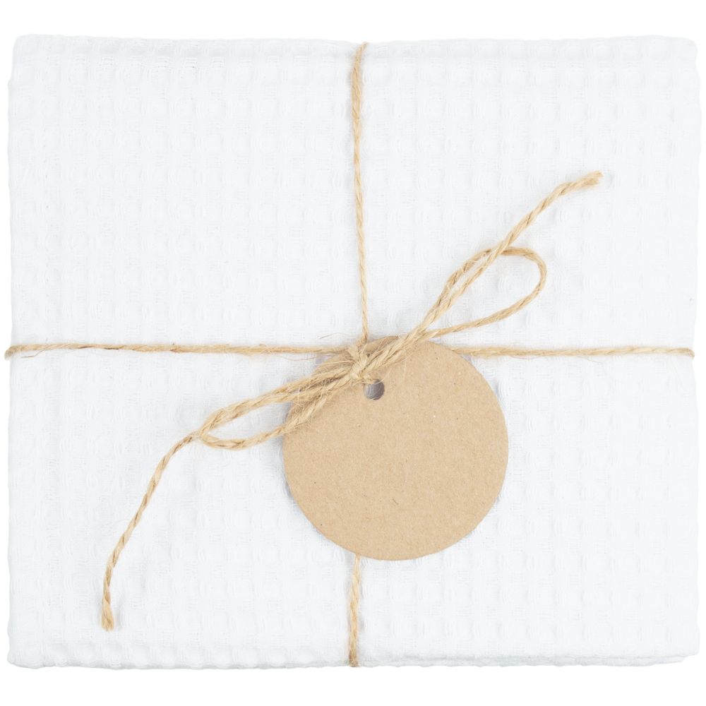 В набор входят 2 кухонных полотенца, перевязанных бечевкой с картонной биркой, на которую можно нанести логотип.