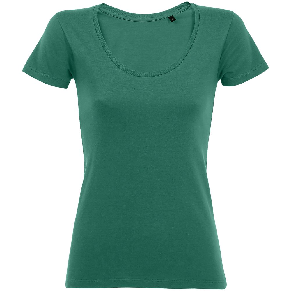 Женственная футболка с глубоким круглым вырезом.