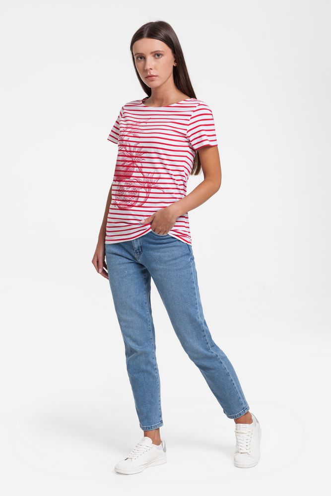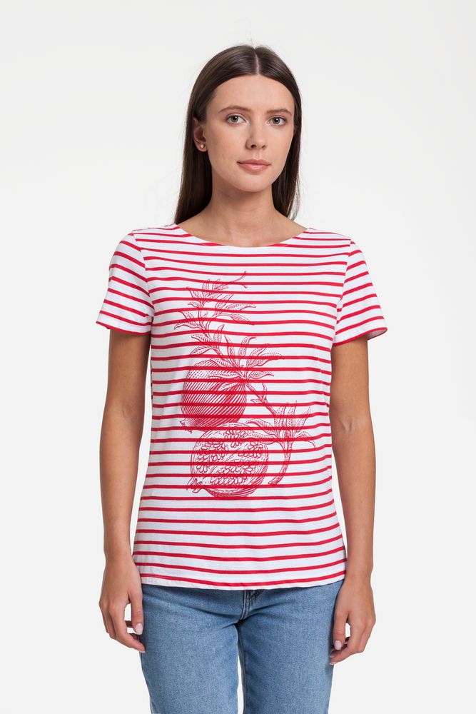 Кроеная женская футболка с короткими рукавами.