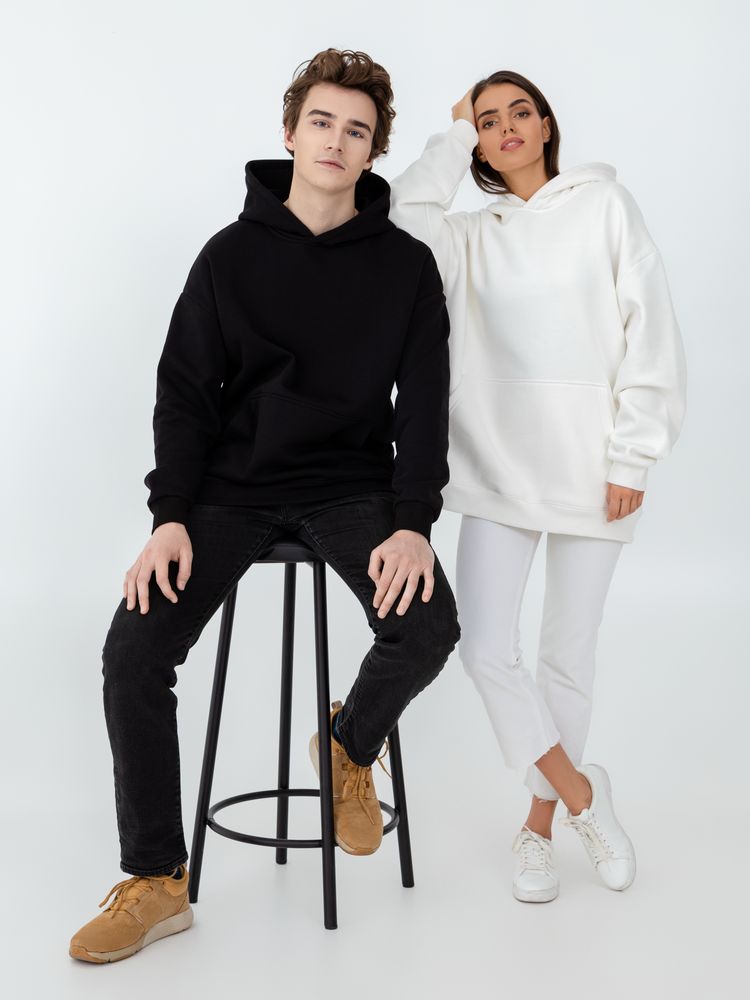 Худи унисекс со спущенным плечом и карманом-кенгуру.