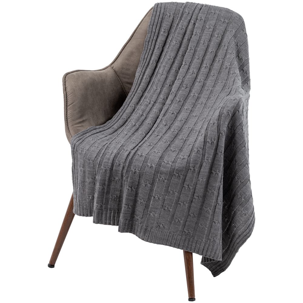 Вязаный плед фактурной вязки из меланжевой пряжи.