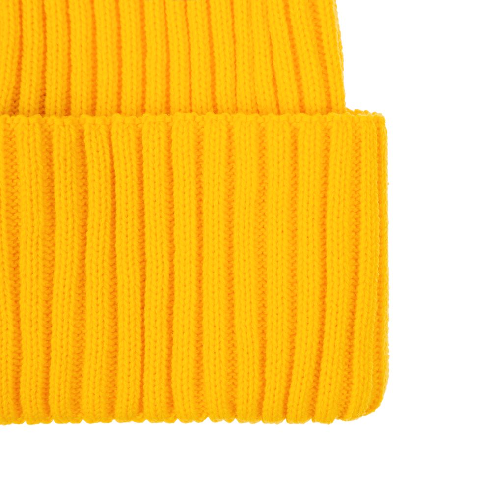 Однослойная шапка фактурной вязки с двойным отворотом.
