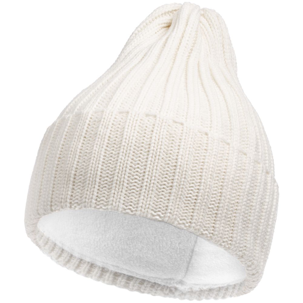 Однослойная шапка фактурной вязки с флисовой подкладкой.