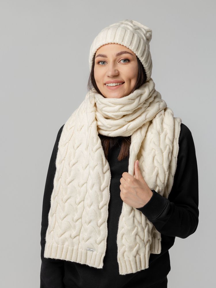 Мягкая удлиненная женская шапка объемной вязки Loren — уютный вариант для создания современного городского образа.