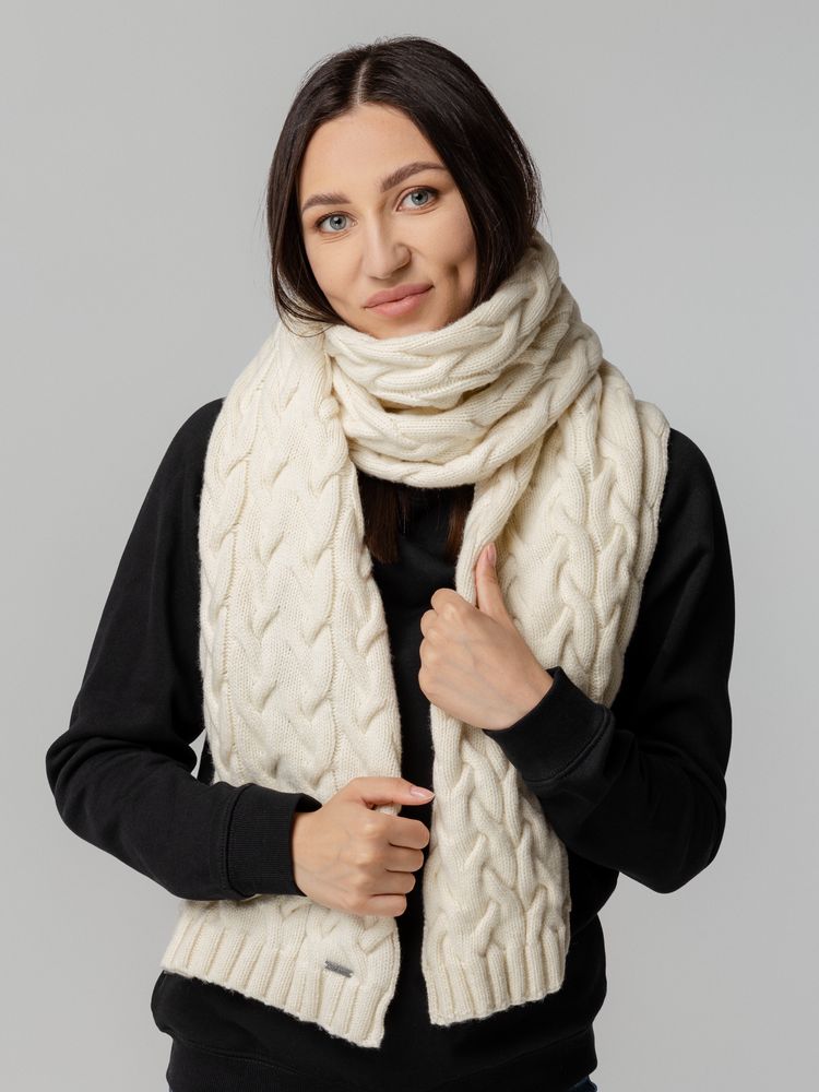 Однослойный шарф фактурной вязки с объемными косами.