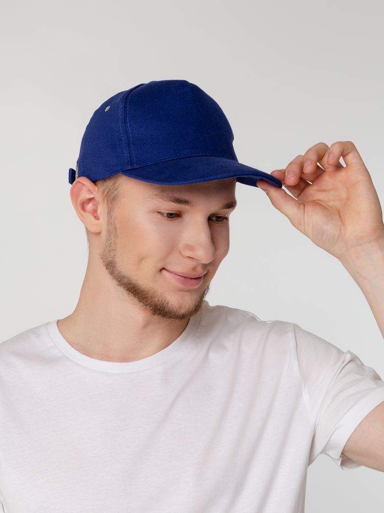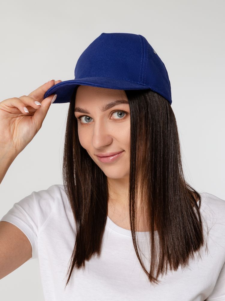 Минималистичная бейсболка с закругленным козырьком и большим местом для нанесения логотипа.