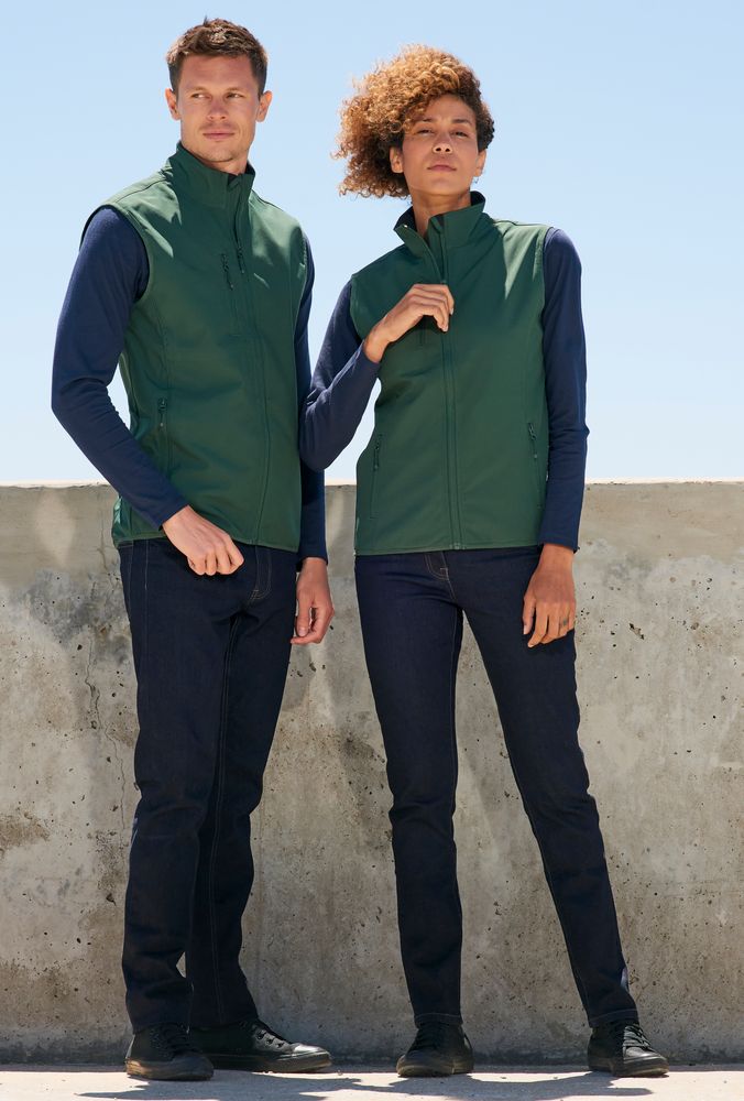 Женский водонепроницаемый и ветрозащитный жилет на молнии из софтшелла с флисовой изнанкой. Выполнен из переработанного полиэстера.