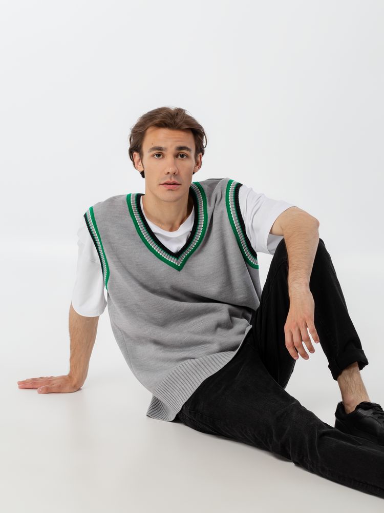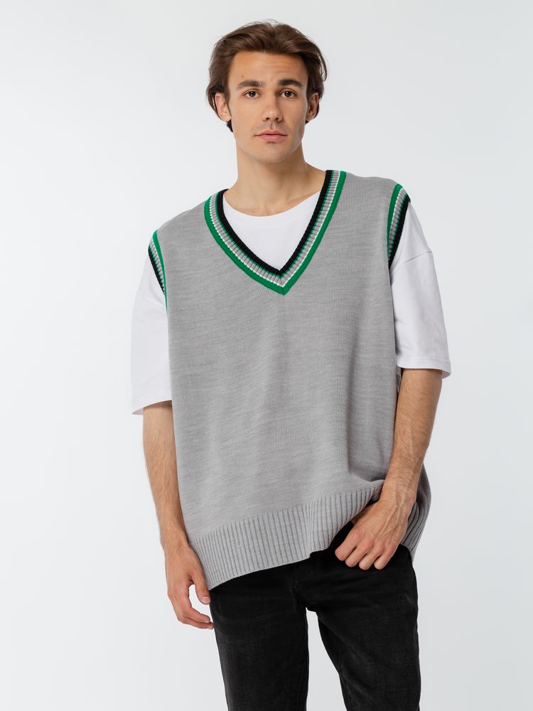 Оверсайз жилет с V-образным вырезом и цветной отделкой.