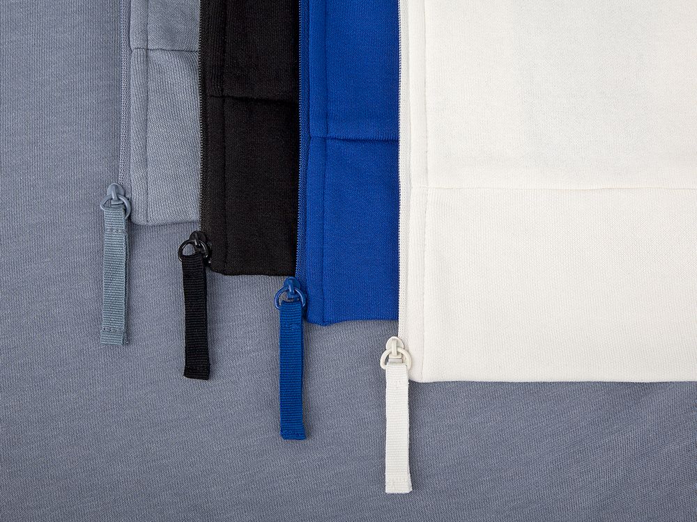 Толстовка унисекс на молнии со спущенным плечом.