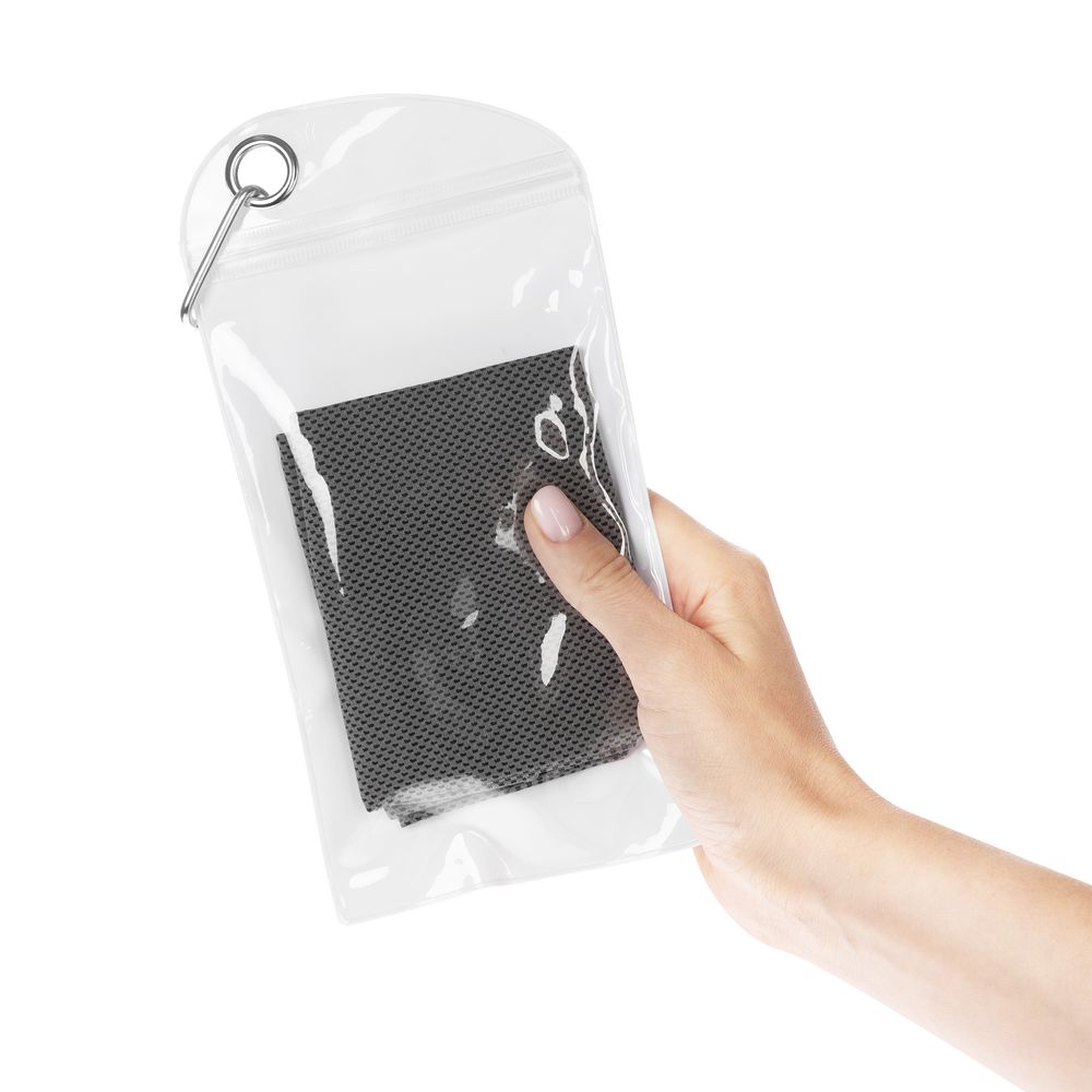 При хранении в чехле полотенце сохранит охлаждающий эффект в течение нескольких часов.