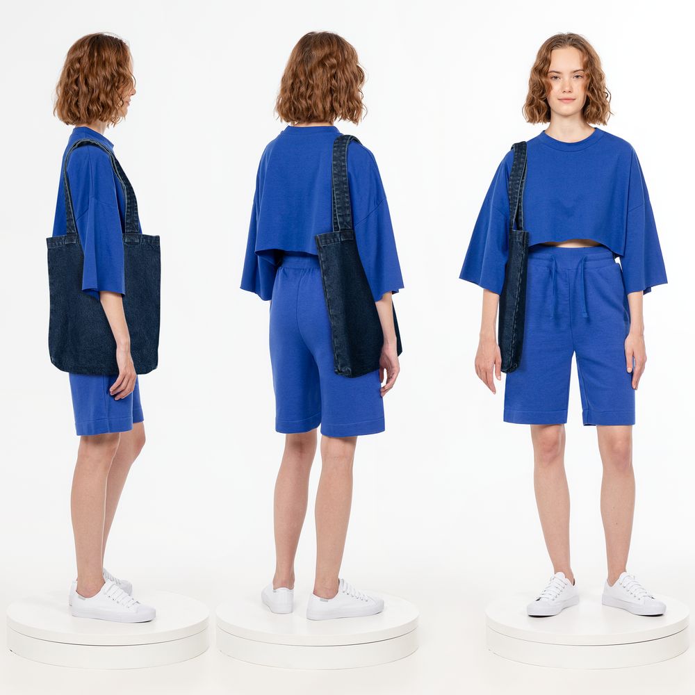 Базовый шопер из джинсовой ткани разработан в рамках единой коллекции и легко собирается в комплекты. Специально спроектированные лекала и технологии пошива открывают простор для любых вариантов кастомизации и нанесения изображений. На видимой части изделий нет лейблов с айдентикой бренда, а название бренда с уходника легко удалить.