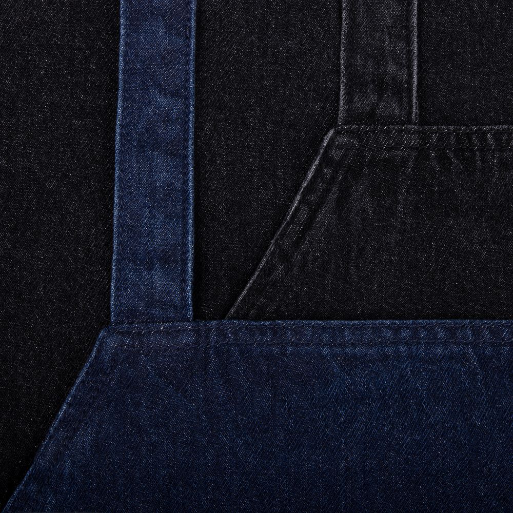 Стильный фартук из денима разработан в рамках единой коллекции одежды и аксессуаров и легко комбинируется с ее элементами. Специально спроектированные лекала и технологии пошива открывают простор для любых вариантов кастомизации и нанесения изображений. На видимой части изделий нет лейблов с айдентикой бренда, а название бренда с уходника легко удалить.