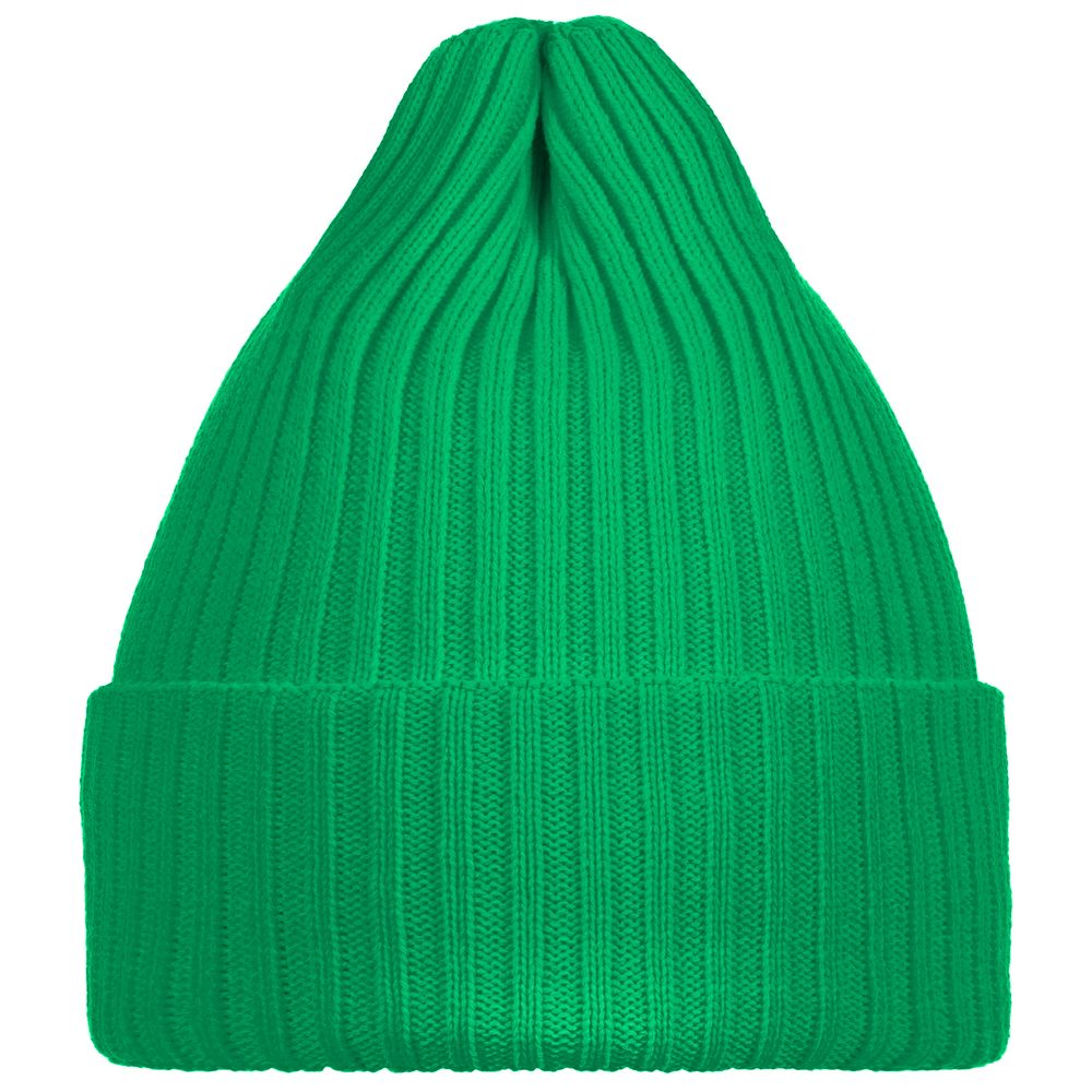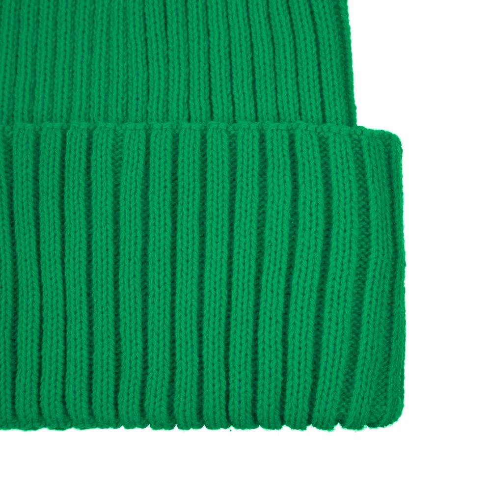 Однослойная шапка фактурной вязки с двойным отворотом.
