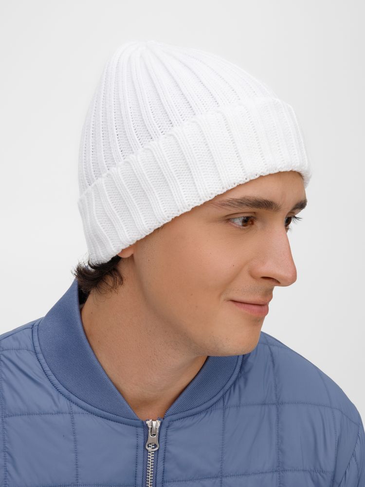 Однослойная шапка рельефной вязки с отворотом.