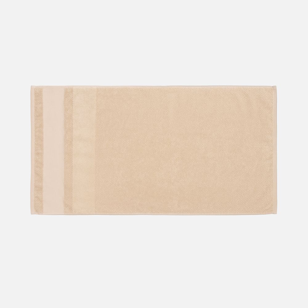 Пышная рельефная структура создает эффект роскошного спа-ухода и быстро впитывает влагу благодаря расположенным пучками петлям, а изящная полоса из стриженных петель с эффектом велюра добавляет ему мягкости и элегантности. Практичный гладкий бордюр станет идеальным холстом для нанесения символики и позволит создать уникальный персональный подарок.