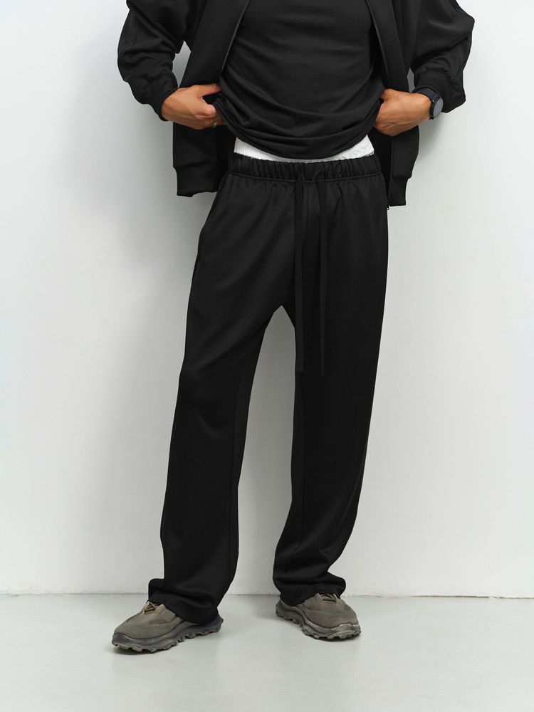 Джоггеры унисекс свободного прямого кроя Arto выполнены из высокотехнологичного трехслойного материала, известного как ткань скуба или трикотажный неопрен, в самом центре которого спрятаны объемные нити текстурированного полиэстера.