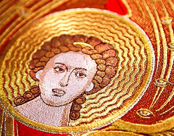 Всё просто: приходите в ближайшую церковь и обращаетесь к батюшке. Он уже неоднократно освящал иконы и знает, как освятить вышитую икону.