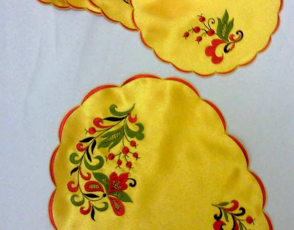 Материал. Мы вышиваем на салфетках из хлопка и льна, шёлка и атласа, бархата и органзы, газа и парчи, полиэстера и вискозы, других тканей. Для каждого типа материала разработана технология, которая позволяет добиться наиболее высокого качества вышивки.