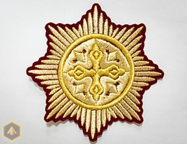 Вышивка крестов на облачения выполнена металлизированной нитью. Двумя оттенками золота. Для вышивки используются нити Marathon (Южная Корея):