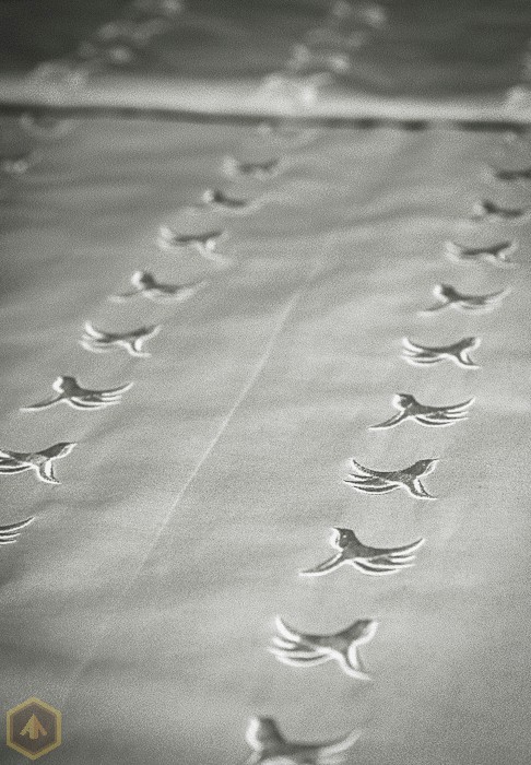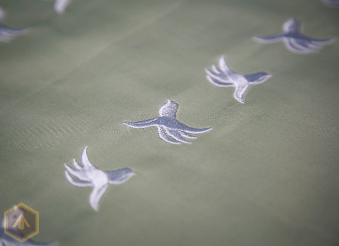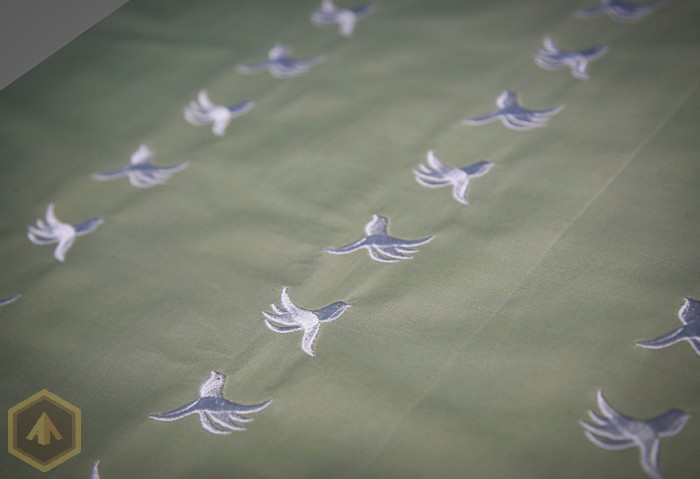 1.  На наших вышивальных машинах, благодаря умелой работе наших программистов, мы можем вышивать большие полотна ткани для производства постельного белья, не приобретая для этого специальные флажные машины. Данный дизайн составлен из 35 фрагментов одной компьютерной вышивальной программы, которые вышиваются последовательно, аккуратно стыкуя и выдерживая прямую линию. Размер полотна составляет по высоте - 4 метра  32 см и по ширине – 36 сантиметра. Работа  заняла 15 рабочих часов. По проекту  Натальи Сушковой  и в ее исполнении  - эта работа была  выполнена  вовремя  и  заказчик  остался доволен.