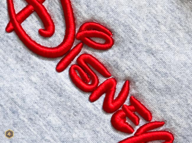 Последнее время стало входить в моду 3D вышивка на футере. Она достаточно эффектно выглядит на свитерах и толстовках, если сделано качественно.